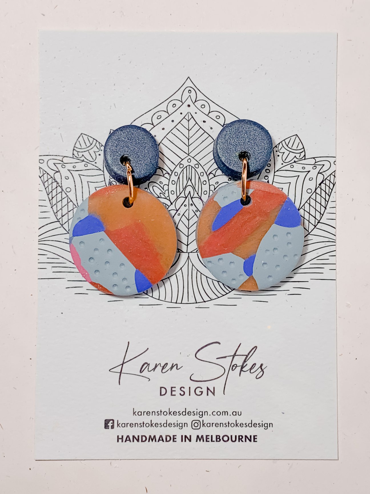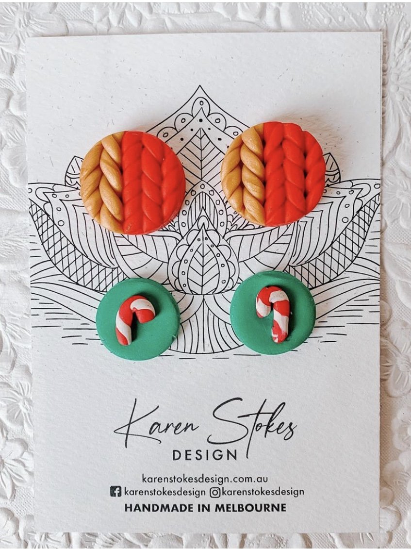 Karen Stokes Design specialises in creating one of a kind, quality jewellery out of polymer clay. Her designs are considered to be part of the slow fashion movement which celebrates products that are made to last and promotes purchasing items which are not mass produced and end up in landfill. Each of the designs that are made are handmade and with her new line of jewellery there are hand painted pieces available too. These pieces are wearable art as each piece is unique. Karen prides herself on the fact that all the earrings are created out of polymer clay and she uses every piece of clay to ensure that there is no wastage.